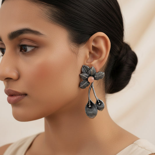 Bud Flower oxidized stud earrings (Baby Pink)
