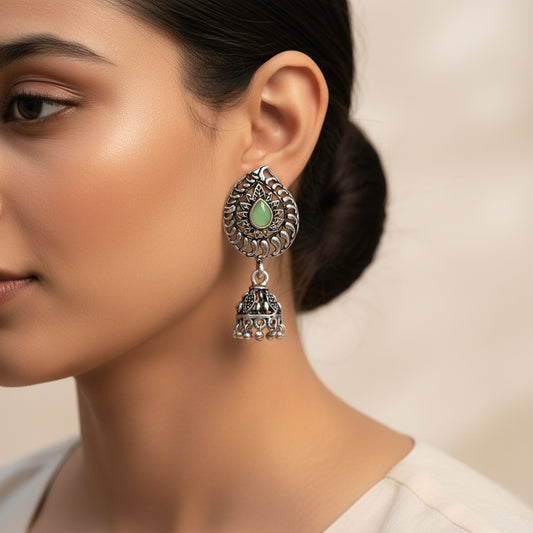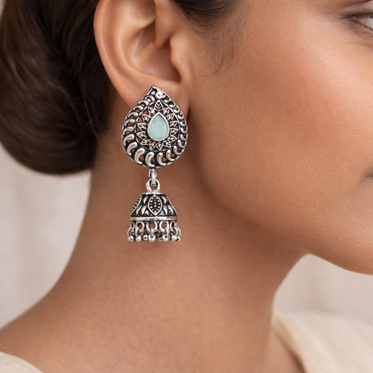 Rain Drop Rani Hanging Jhumki Earrings (Mint)