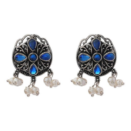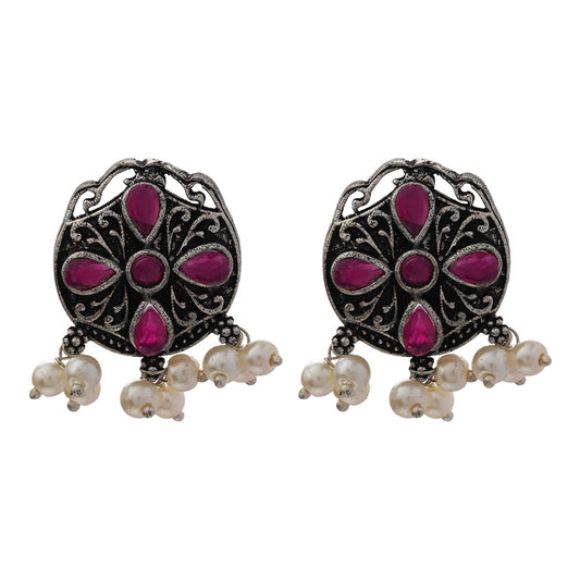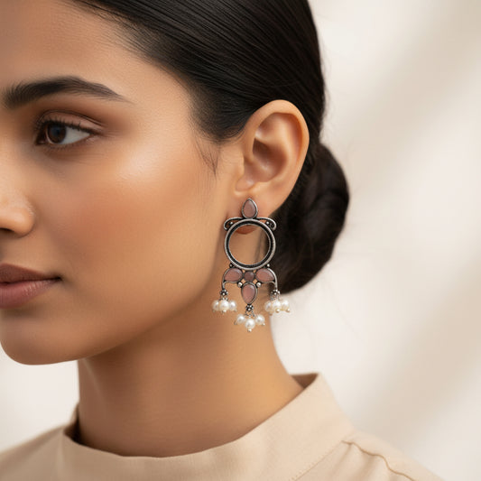 Regal silver pearl oxidised chain neckpiece (Silver)