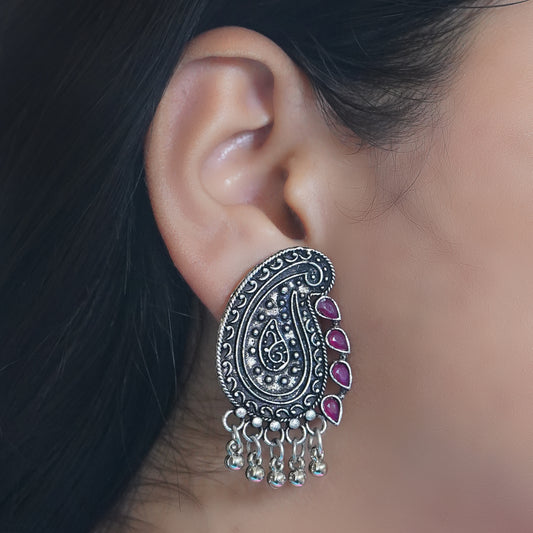 Rain Drop Rani Hanging Jhumki Earrings (Grey)