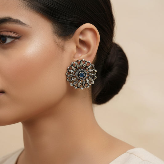 Wildflower oxidised stud earrings (Light Orange)