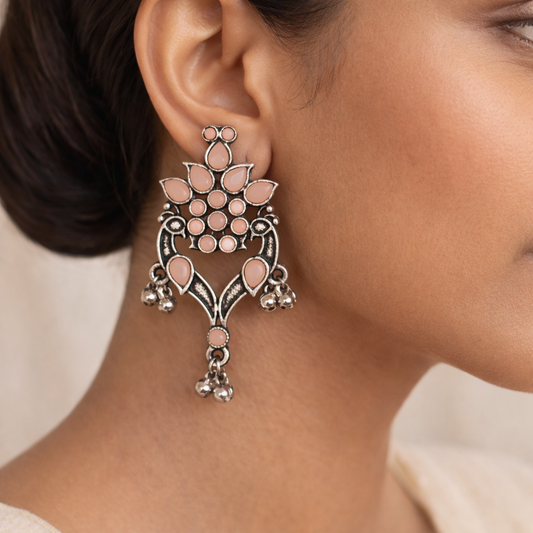 Jharokha stone studded jhumki earring (Baby Pink)
