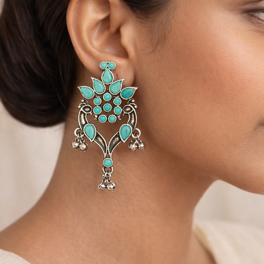 Jharokha stone studded jhumki earring (Mint)