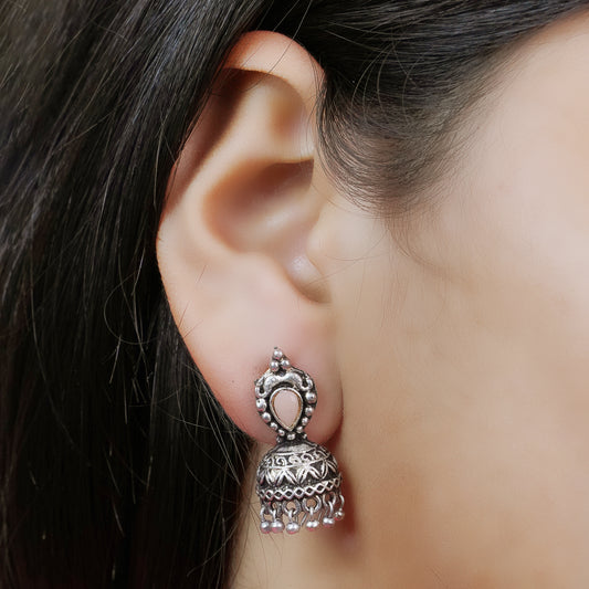 Paisley Swirl Ghungroo jhumki earring (White)