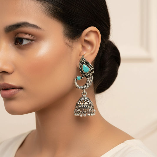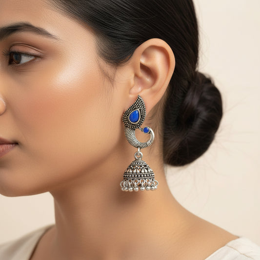 Paisley Swirl Ghungroo jhumki earring (Blue)