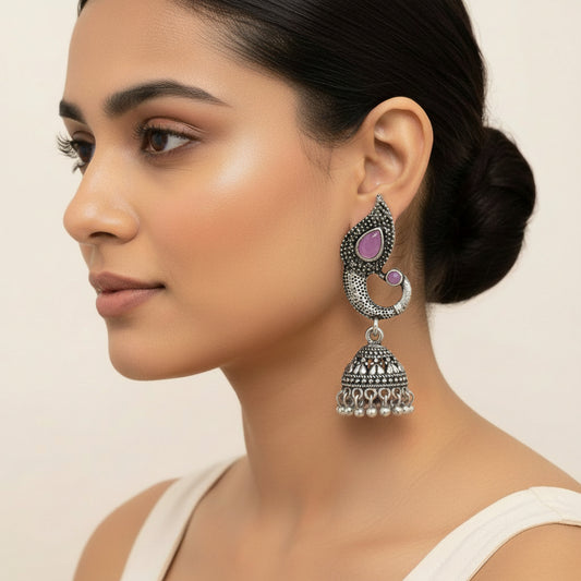 Royal Meenakari oxidized stud esrrings (Baby Pink)