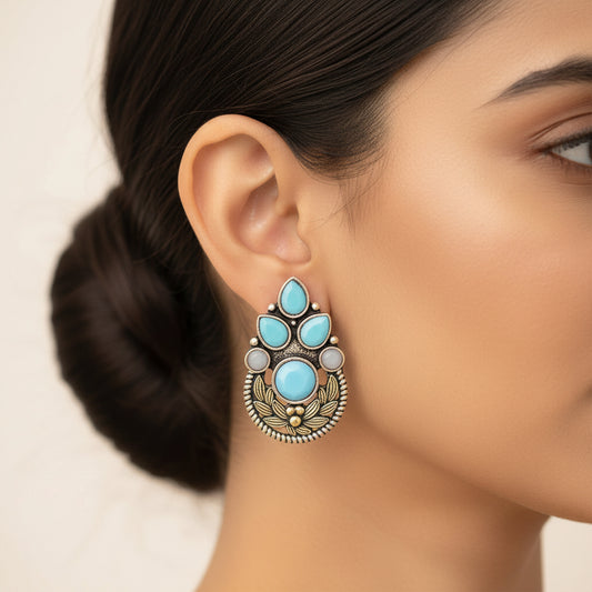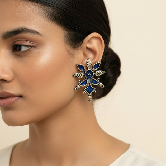 Royal Meenakari oxidized stud esrrings (Blue)
