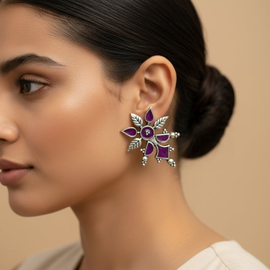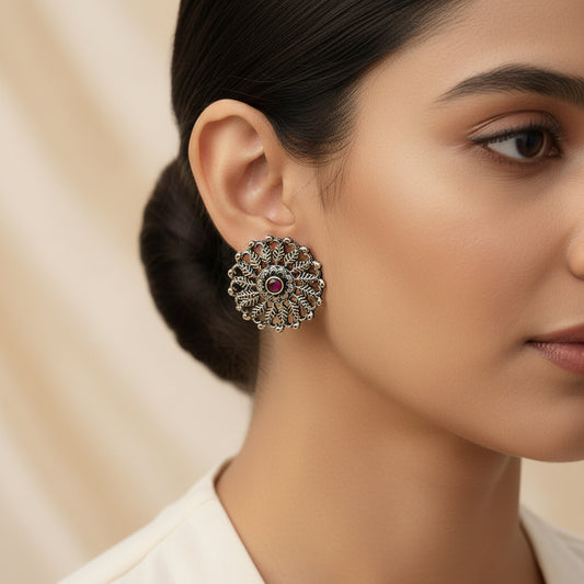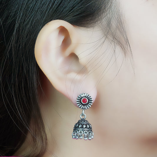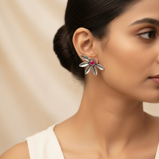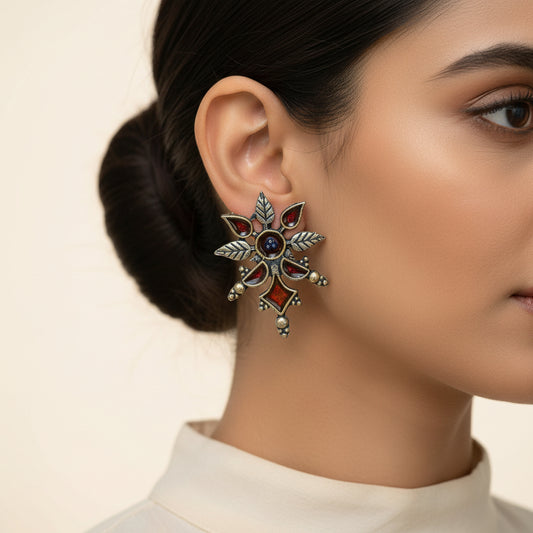 Wildflower oxidised stud earrings (Red)