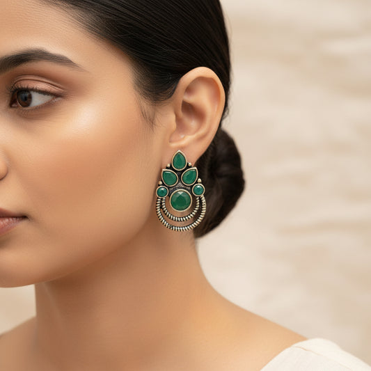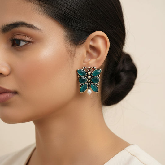 BeadedButterfly stone studded oxidised stud earrings (Green)