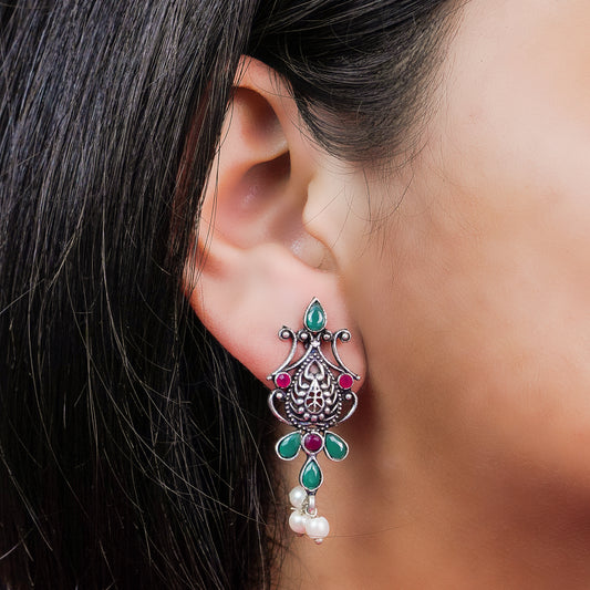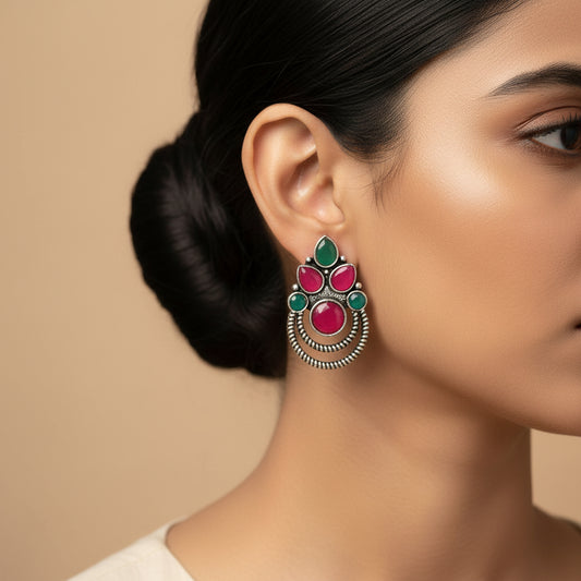 Royal Meenakari oxidized stud esrrings (Red)