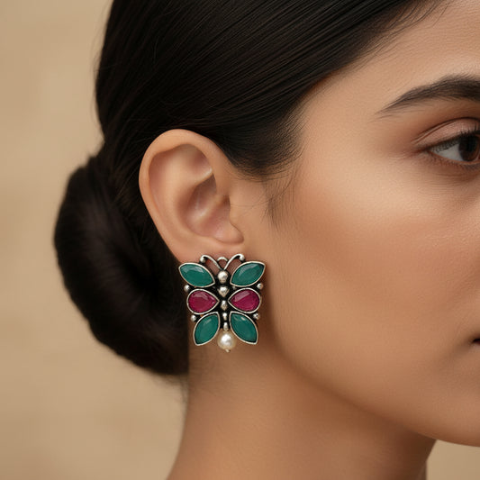 BeadedButterfly stone studded oxidised stud earrings (Multicoloured)