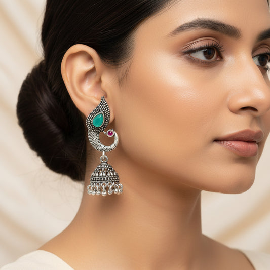 Paisley Swirl Ghungroo jhumki earring (Green)