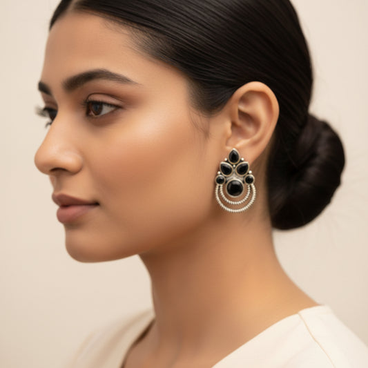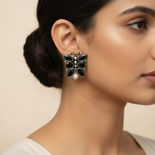 BeadedButterfly stone studded oxidised stud earrings (Black)
