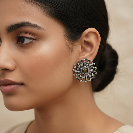 Wildflower oxidised stud earrings (Yellow)