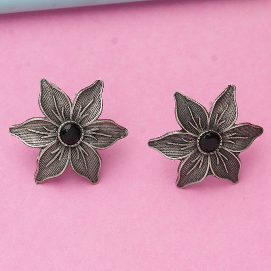 Wonderful wildflower oxidised stud earrings (Dark Red)