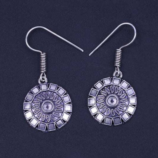 Sunrise Shaped Silver Polished Oxidised Danglers
