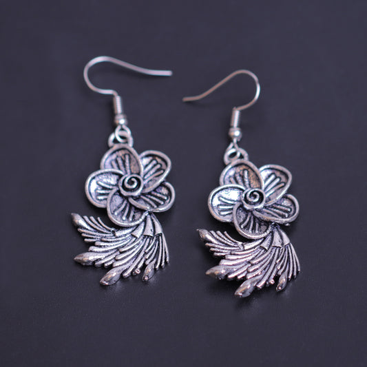 Flowerleaf Shaped Silver Polished Oxidised Danglers