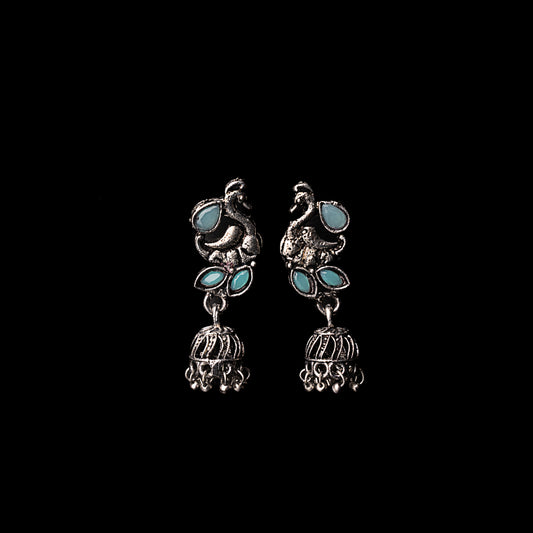 Marvalous Mayur stone studded jhumki earring (Mint)