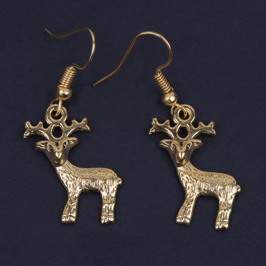 Deer Shaped Golden Polished Oxidised Danglers