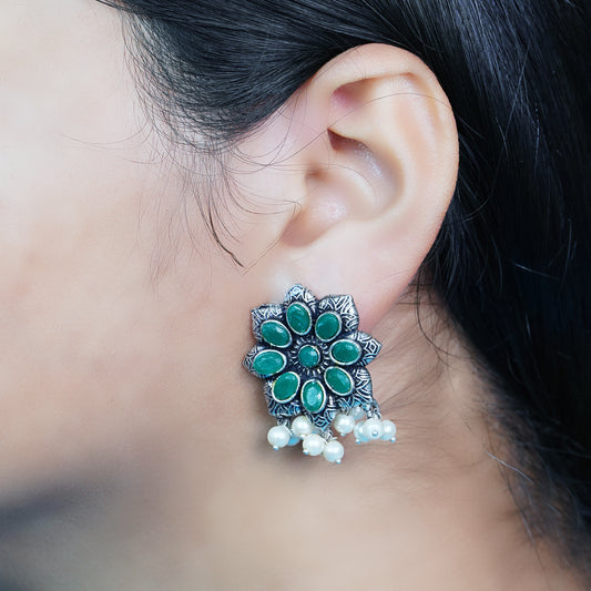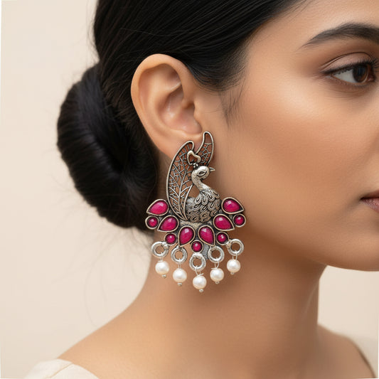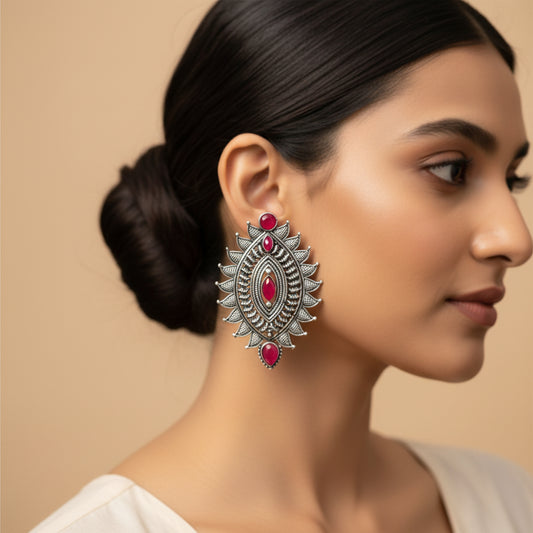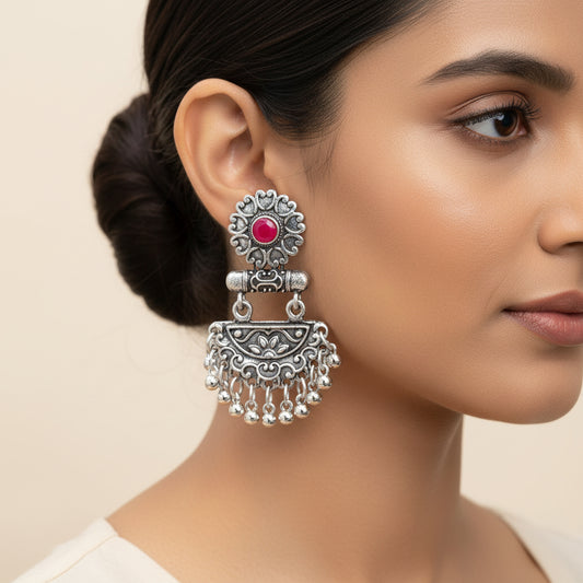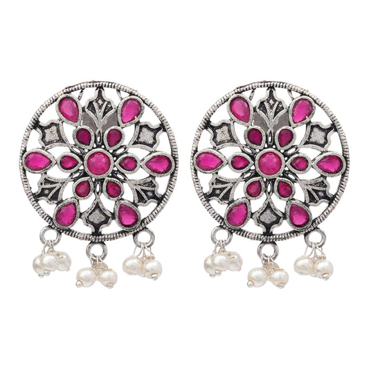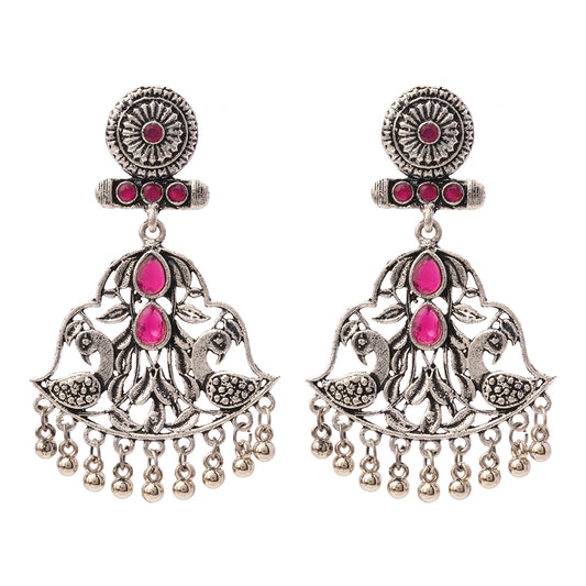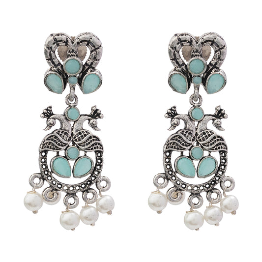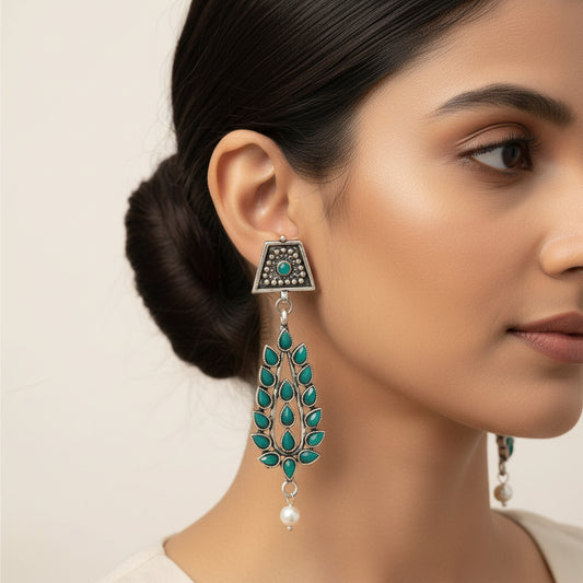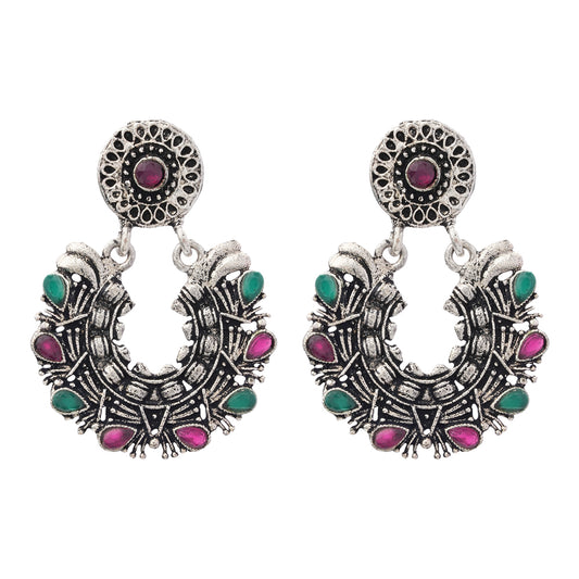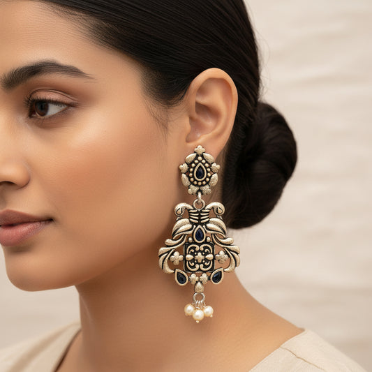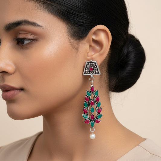 Light Orangish Stone Studded Statement German Silver Dangler Earrings