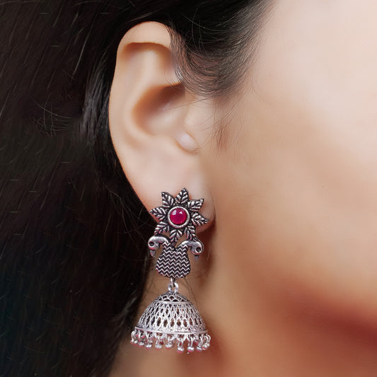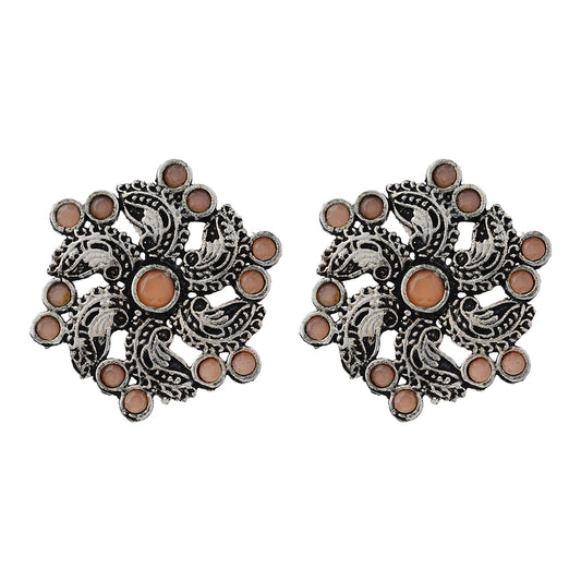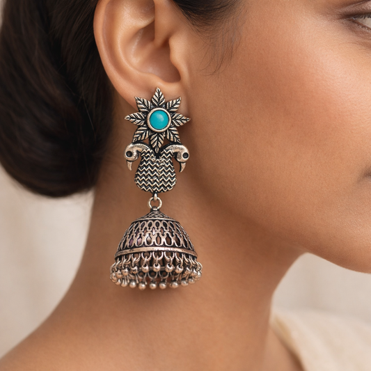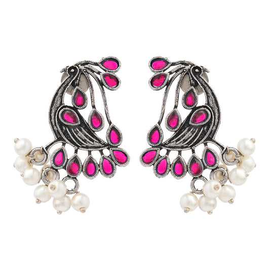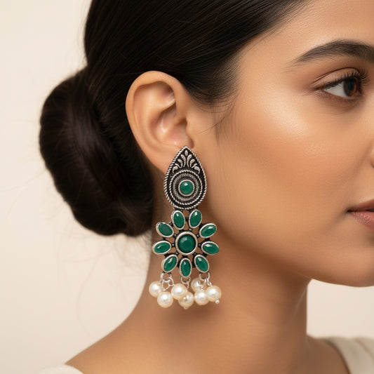 Regal silver pearl oxidised chain neckpiece (Silver)
