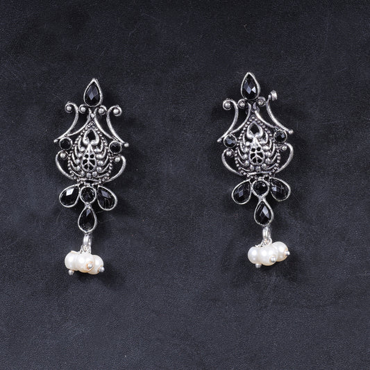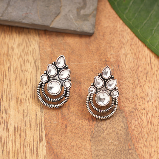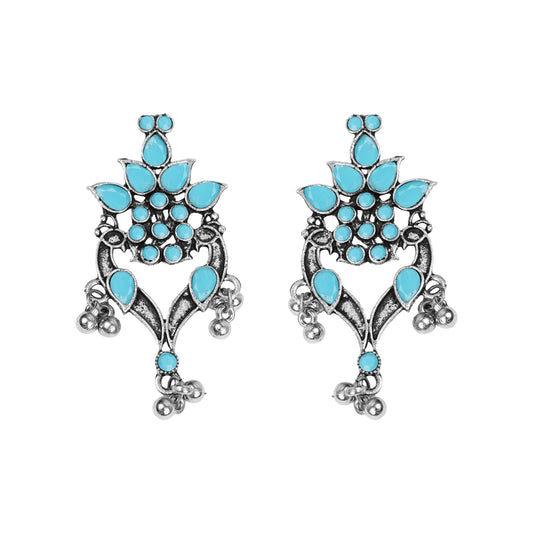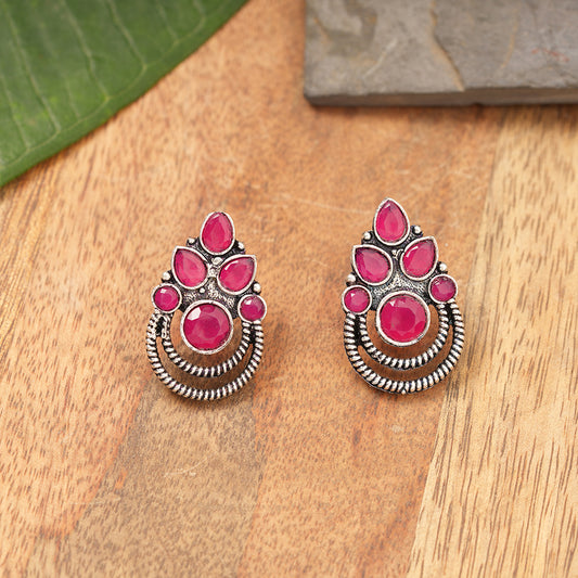 RadiantRays stone studded oxidised stud earrings (Blue)
