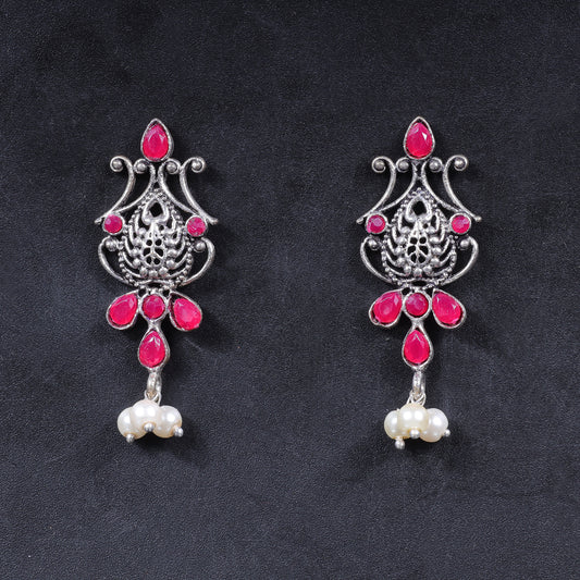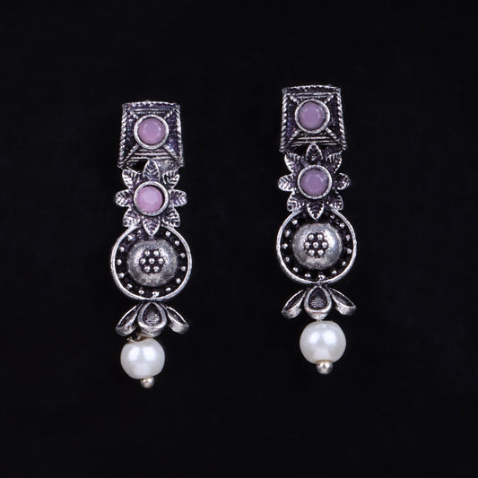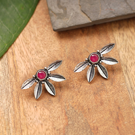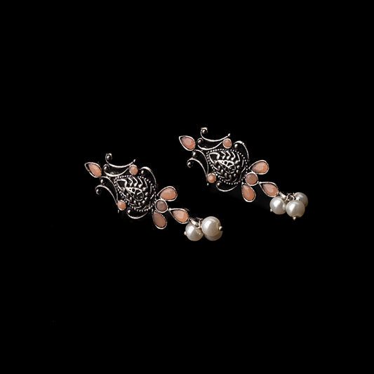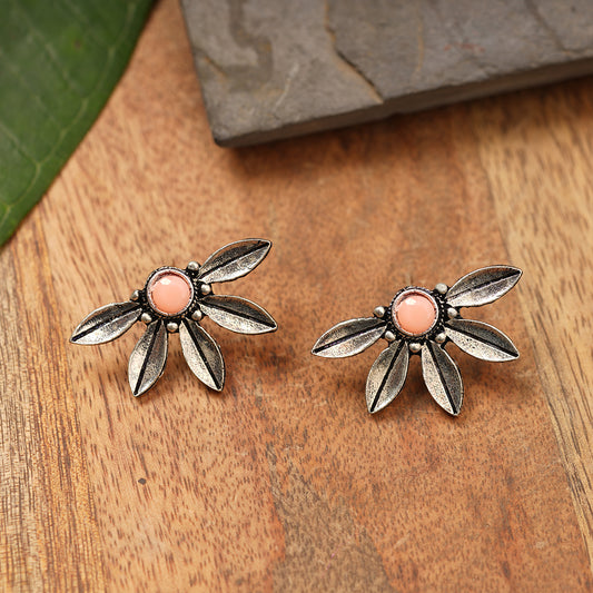 Wonderful wildflower oxidised stud earrings (Baby Pink)