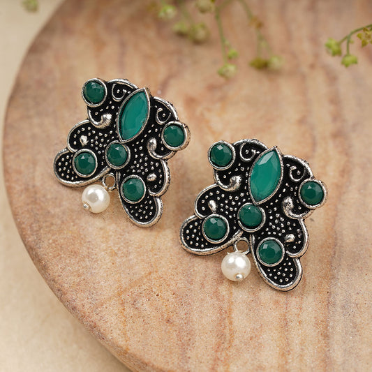 BeadedButterfly stone studded oxidised stud earrings (Green)