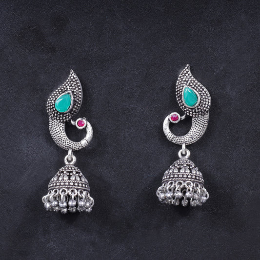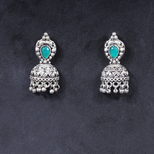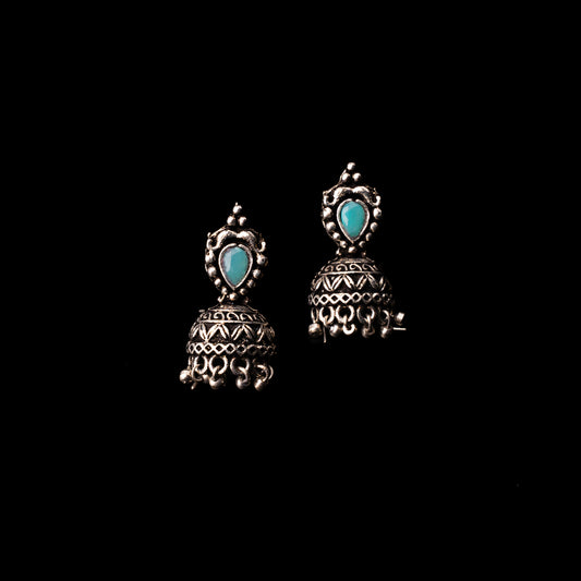 Paisley Swirl Ghungroo jhumki earring (Green)
