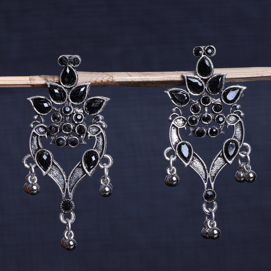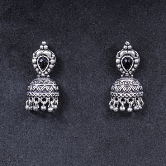 Royal Triple Bell Layered Jhumka Earring (Black)