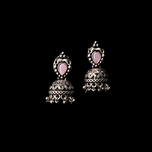 BeadedButterfly stone studded oxidised stud earrings (Baby Pink)