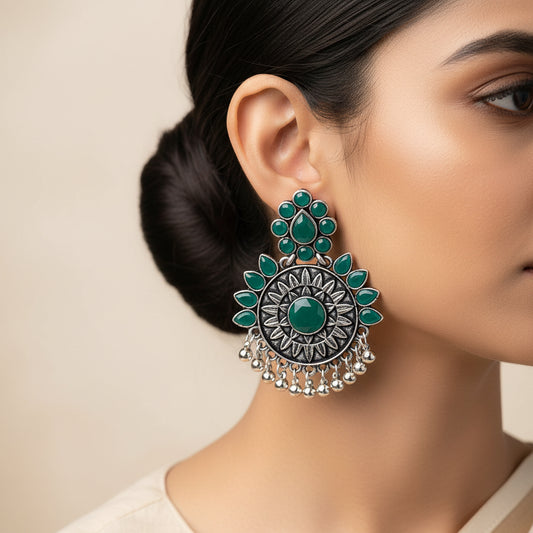 Peacock gem oxdized stud earrings (Green)