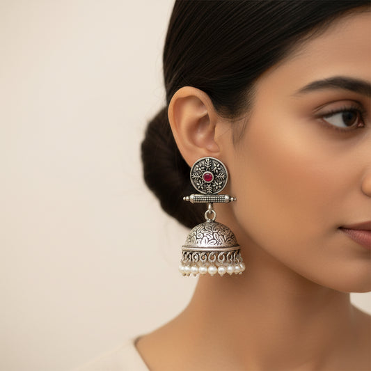 Charmbell jhumka earrings (Dark Red)