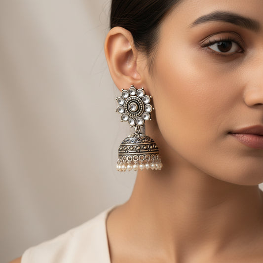 Charmbell jhumka earrings (White)
