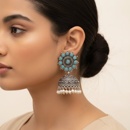 Evergreen jhumka earrings (Sky Blue)