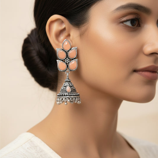 Twinkle drops jhumki earrings (Baby Pink)