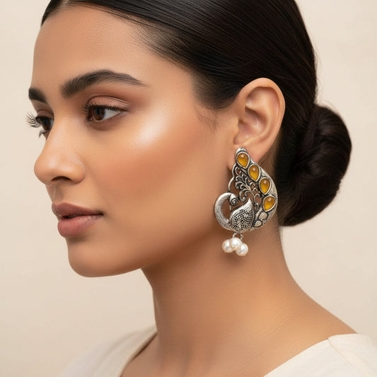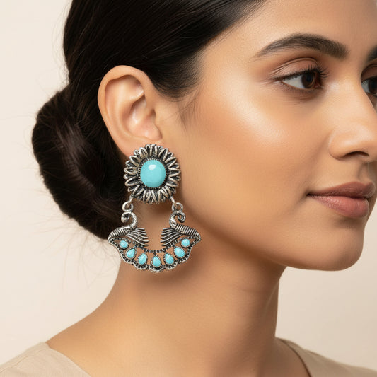 Moon-lit Mayur Jhumki earrings (Mint)