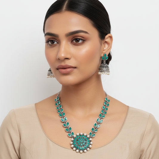 Radiant bloom stone studded neckpiece (Green)