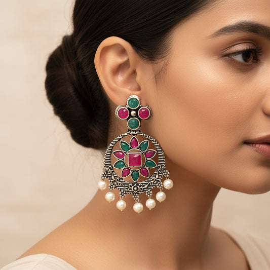 Flower Rangoli Pearl dangler earrings (Multicolored)