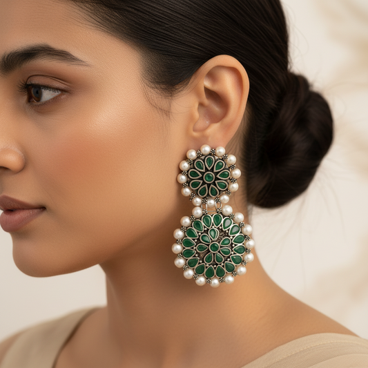 Moon-lit Mayur Jhumki earrings (Green)
