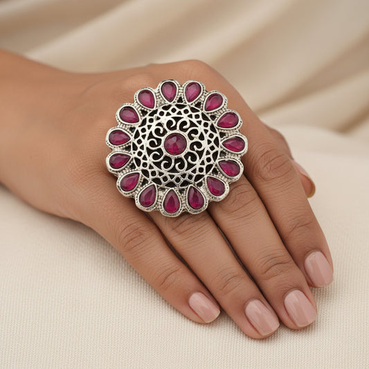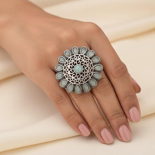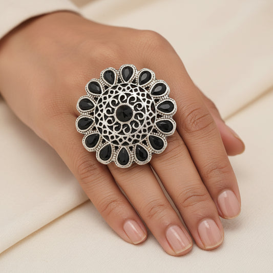Regal silver pearl oxidised chain neckpiece (Silver)