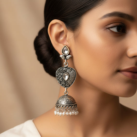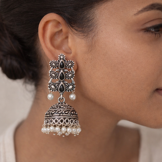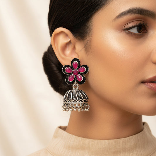 Floral Jharokha jhumki earrings (Black)