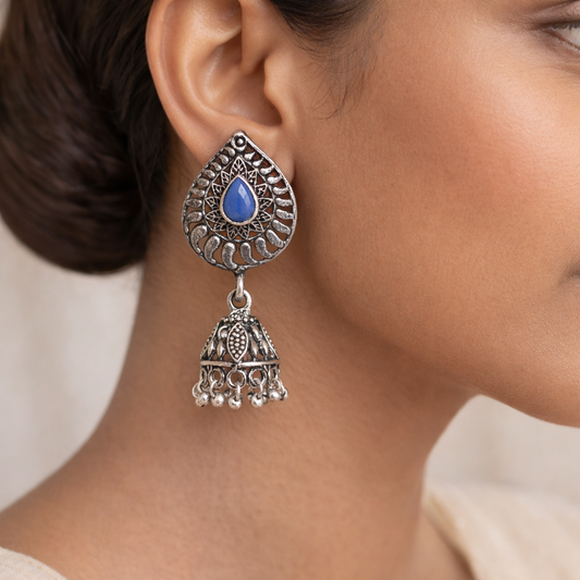Paisley Swirl Ghungroo jhumki earring (Blue)