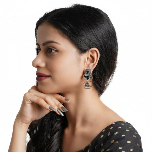 Rain Drop Rani Hanging Jhumki Earrings (Black)