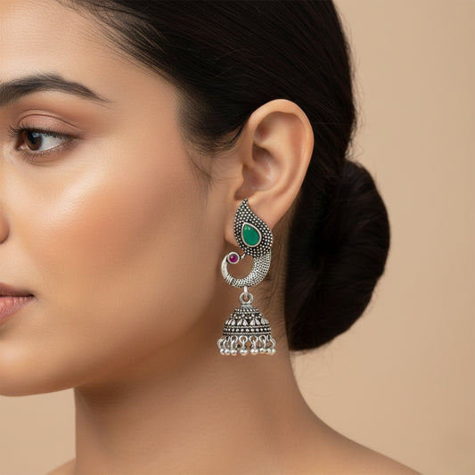 Fearless feathers jhumki earrings (Green)