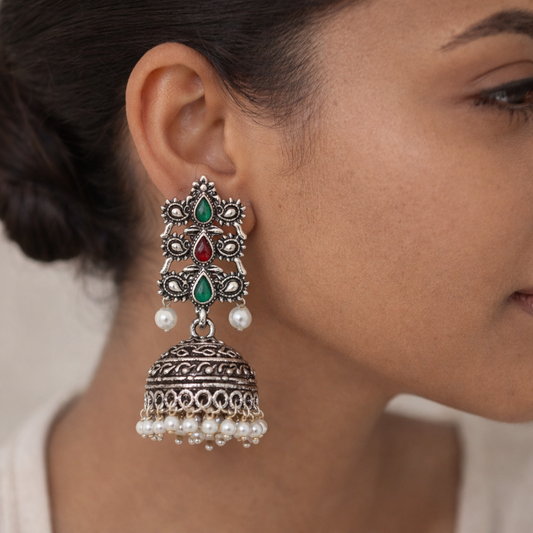 Sooraj radiance pearl jhumki earring (Red)