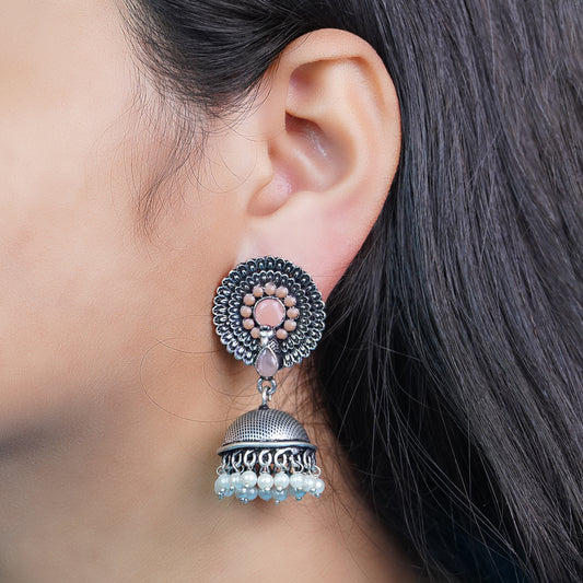 Fearless flower jhumki earring (Baby Pink)