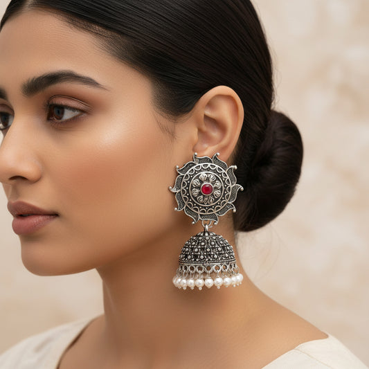 Sooraj radiance pearl jhumki earring (Dark Red)