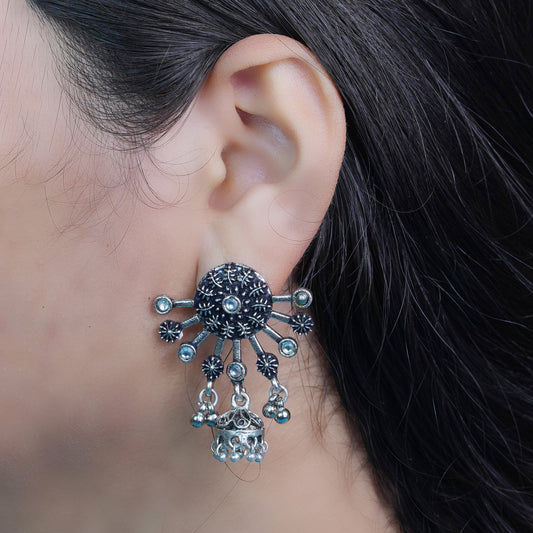 floral charm traditional jhumka earrings (Sky Blue)