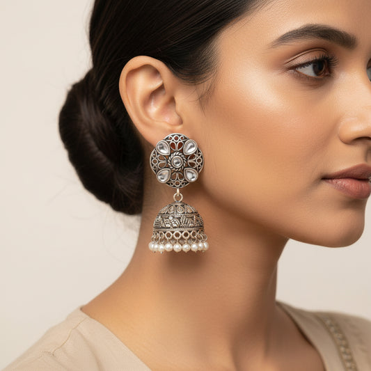 Slays and rays jhumki earrings (White)